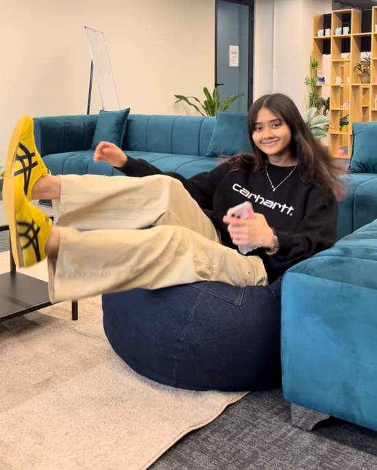 Found the most coolest denim bean bag and it's super functional, love binge watching on this, Its super stylish, 10/10 recommended!!